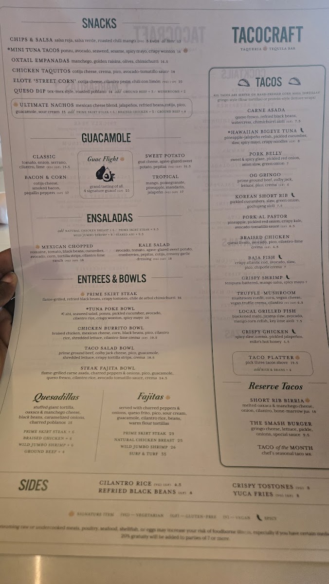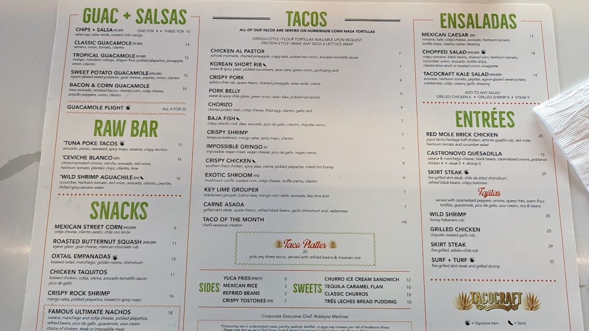 Pick any 3 Handcrafted Tacos! Add Cilantro Rice & Beans for $4 and make it the Ultimate Taco Platter!