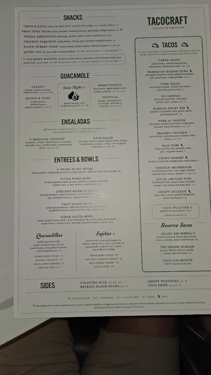 prime ground beef, colby jack cheese, pico, guacamole, shredded lettuce, crispy tortilla strips, crema