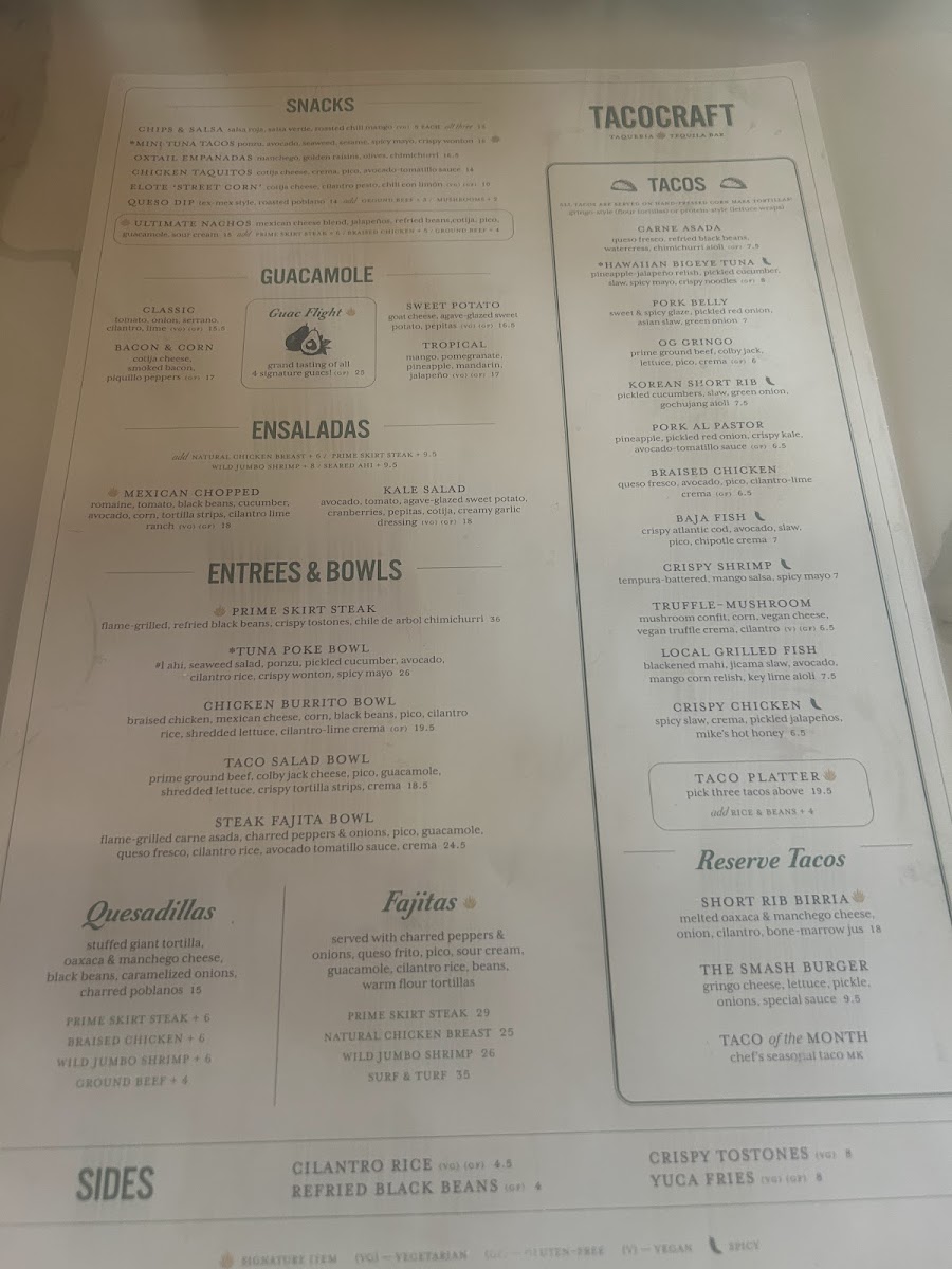 prime ground beef, colby jack, pico, shredded lettuce, crema